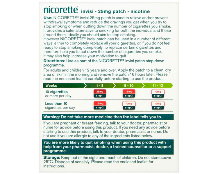 پس از استفاده، پچ Nicorette Invisi جریان ثابتی از نیکوتین را تا 16 ساعت در بدن فراهم میکند و هوس نیکوتین را در طول روز که بیشتر به آن نیاز دارید، از بین میبرد.